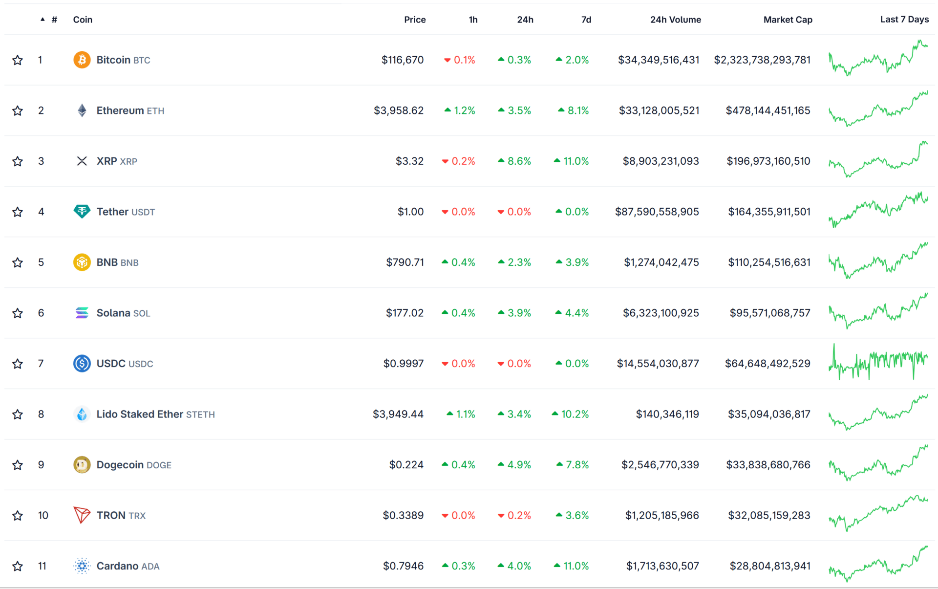 Bitcoin (BTC): Up 2.0% – now at $116,670